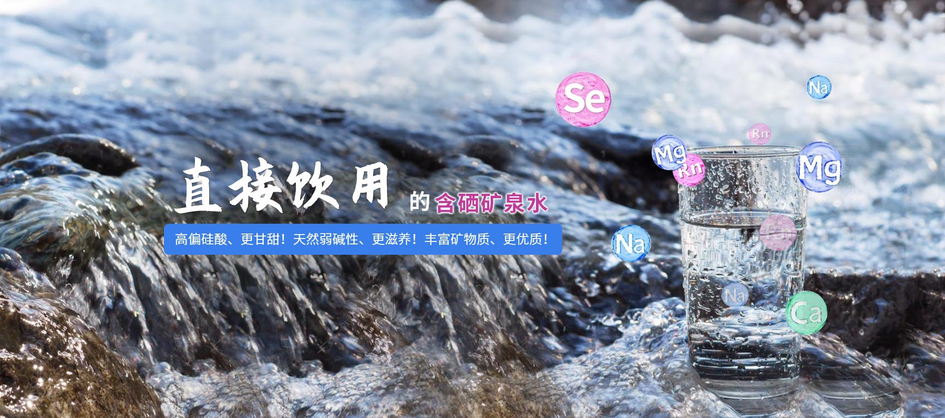 從源頭向全世界供應天然礦泉水,口感純正,清冽甘甜!